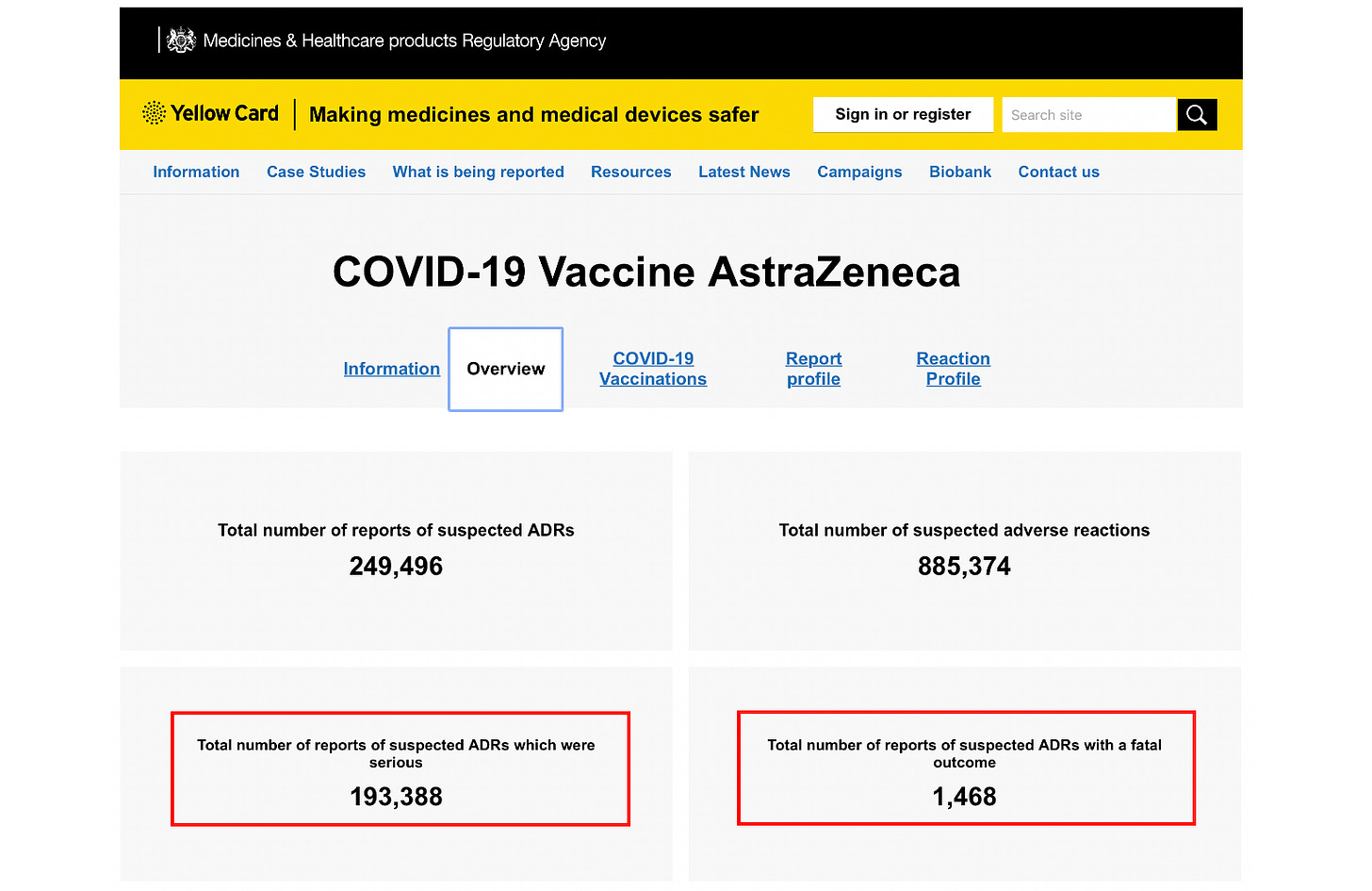 Bear in mind that, according to this Harvard study commissioned by the US government, “fewer than 1% of vaccine adverse events are reported” on the US Vaccine Adverse Events Reporting System. So the UK Yellow Card figures are almost certainly a very substantial underestimate of the extent of vaccine harm.
