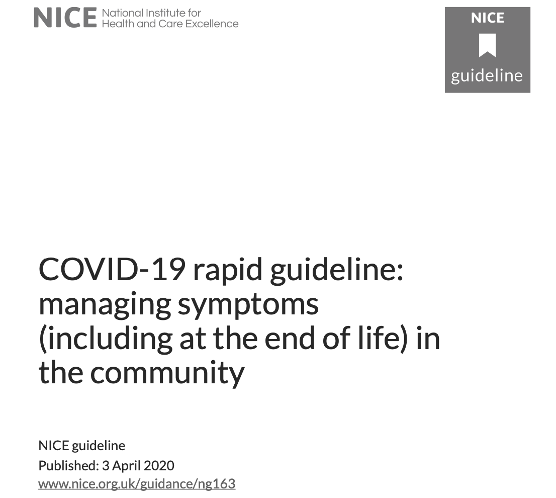 Such as the document NG163, COVID-19 rapid guideline: managing symptoms (including at the end of life) in the community, which is no longer available on the NICE website, but can be viewed e.g. here (archived version) or here(pdf, c/o this related article).