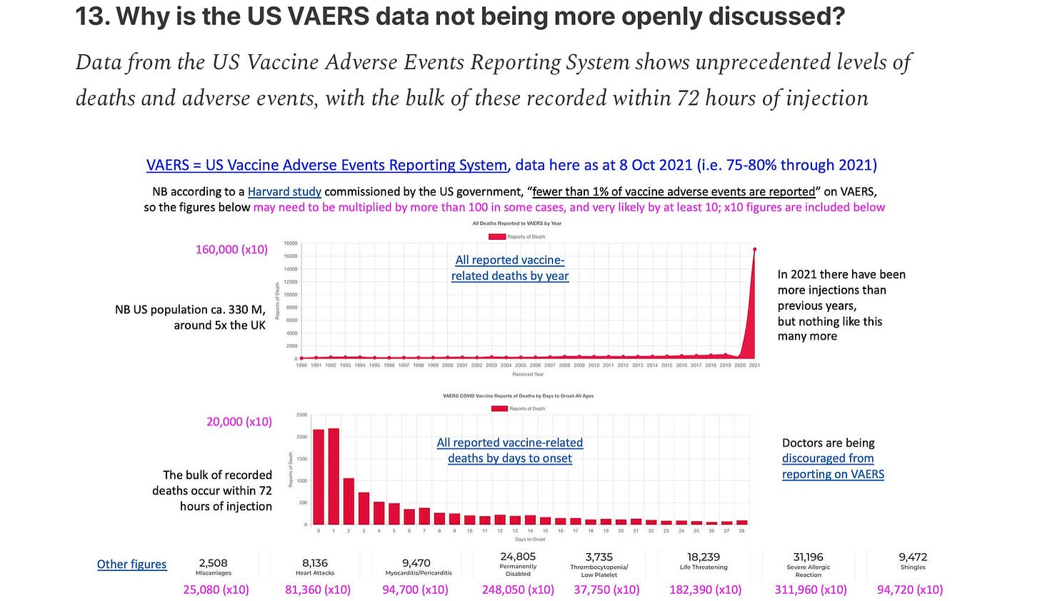 In relation to “people who died shortly after vaccination” I am reminded of the reports on the US Vaccine Adverse Events Reporting System (VAERS) featured in this post based on material I originally put together in October 2021: