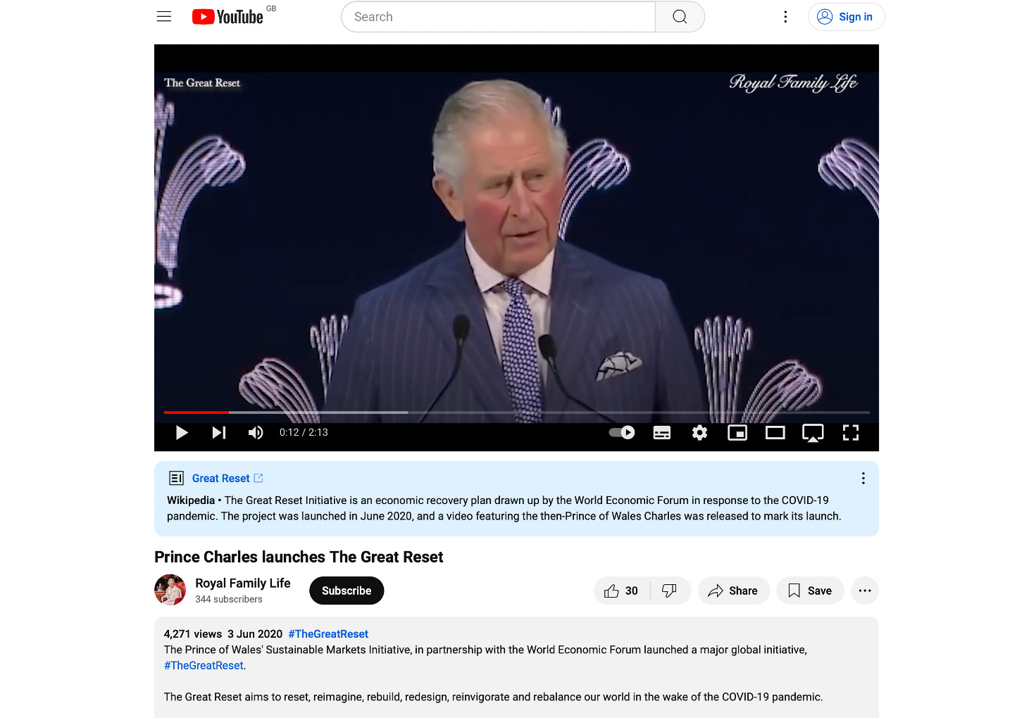 Here is a video of then-Prince Charles launching The Great Reset in June 2020: