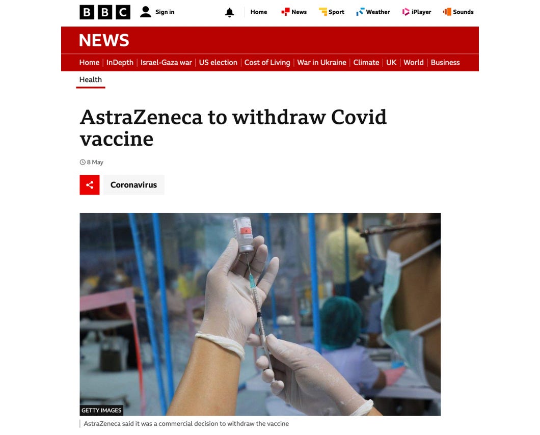 According to this 2024 BBC News article, which followed the withdrawal of AstraZeneca’s covid vaccine: